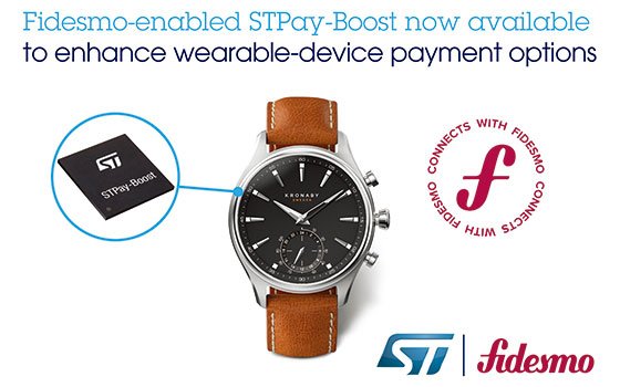 總部位於瑞典馬爾默的智慧混合式腕錶商Kronaby將STPay-Boost晶片嵌入其男女款智慧手錶産品組合中,提供無需充電和過濾通知等差異化功能。這款內建Fidesmo標記化平台的系統晶片讓Kronaby手錶能透支援各種服務,例如,支付、門禁、交通卡和忠誠度獎勵。