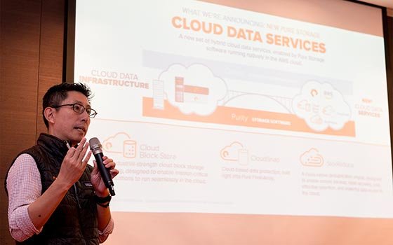 【圖說二】Pure Storage台灣技術總監何與暉分享Cloud Data Services是一套專為在AWS雲端上原生執行Pure Storage軟體而設計的全新服務。