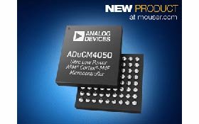 貿澤電子所供應的Analog Devices ADuCM4050微控制器搭載含浮點運算單元的Arm® Cortex®-M4核心、128 KB嵌入式SRAM,和512 KB嵌入式快閃記憶體。裝置結合眾多數位周邊裝置,包括三個SPI介面、兩個UART和一個I²C介面,加上最多51個可程式通用型輸入/輸出 (GPIO)。微控制器內的類比子系統提供時脈、重置和電源管理功能,以及12位元的連續漸進暫存器 (SAR) 類比數位轉換器 (ADC)。