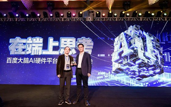百度AI技術生態部總經理喻友平(右)與賽靈思大中華區業務開發總監朱勇(左)共同展示EdgeBoard
