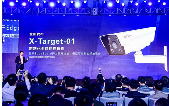 百度AI技術生態部總經理喻友平發布採用EdegeBoard開發的高效能、可客製模型的偵測辨識設備:X-Target-01客製化物件辨識攝影機