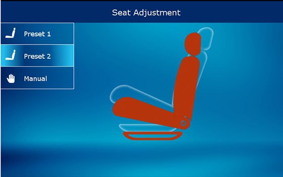 圖4顯示座椅調節HMI。此應用使用EVE作圖形處理,將訊息表現在顯示器上同時處理觸控。也能夠事前配置首選設置,例如座椅位置、靠背位置、靠背高度等。這些預設配置可以存儲,在隨後需要時調用。