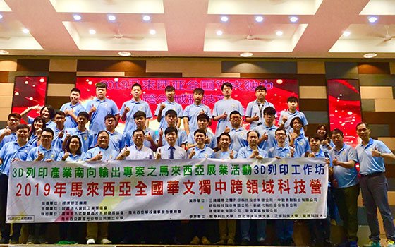 在經濟部工業局指導下,資策會數位服務創新研究所(服創所)以「3D列印智造基地」的品牌為整體國際推廣框架,本年度再度結合台灣地區嵌入式暨單晶片系統發展協會(TEMI協會),帶領國內3D列印產學聯盟進軍大馬,參加由馬來西亞華校董事聯合會總會(董總)主催,霹靂安順三民獨立中學承辦的「2019年馬來西亞全國華文獨中跨領域科技營」活動,以實質落地方式,協助國內3D列印相關設備及材料廠商積極拓展馬來西亞市場,爭取商機。