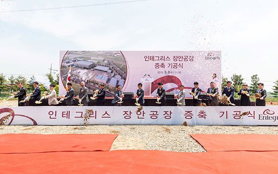 2019年5月8日--特用化學原料暨先進科技材料領導供應商英特格,今天正式於韓國長安區舉行隸屬先進材料處理部門中最新科技高潔淨化學桶(DRUM)製造廠房的破土典禮。英特格投入約 2,000 萬美元(約新台幣 6.18億元)的資金打造這間全新的廠房,預計將於 2020 年下半年度投產,增加 50% 的高密度聚乙烯(HDPE) 桶產能。這是繼 2018 年宣布的現有廠房擴廠之外又一項大手筆投資。
