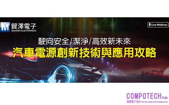 2020年6月9日--提供種類最齊全的半導體與電子元件、專注於新產品導入的授權代理商Mouser Electronics ( 貿澤電子 ),宣佈將於6月10-11日舉辦「汽車電源創新技術與應用攻略」系列線上研討會。 貿澤電子攜手ADI、Maxim、Microchip、Toshiba、和Vicor的原廠專家及台南大學白富升院長,連續兩天下午的2點到4點準時與您線上相約,從不同的角度探討汽車電源技術與應用設計的新未來。