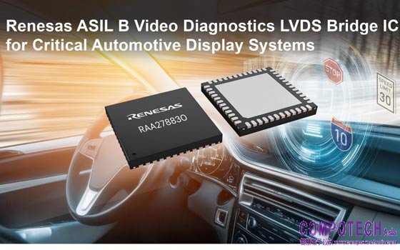 2025年3月27日--先進半導體解決方案頂尖供應商瑞薩電子(TSE:6723)今天推出了RAA278830視訊診斷橋接IC,這是一款高度整合的雙通道低壓差分訊號(LVDS)LCD視訊處理器。該款新IC整合了符合ISO 26262 ASIL B標準的汽車顯示系統所需的許多功能,例如抬頭顯示器(HUD)、數位儀表板、攝影機監控系統(CMS)和電子後視鏡。