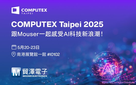 2025年5月15日--全球領先的電子元件新品與工業自動化產品的授權代理商貿澤電子 (Mouser Electronics)宣布將於5月20日至23日首度亮相COMPUTEX (台北南港展覽館1館#I0102展位)。本次展會,貿澤電子攜手NexCOBOT(NEXCOM Robotic Solutions), Renesas Electronics, TAIYO YUDEN等知名合作夥伴,共同探索AI科技如何驅動未來,掌握最新産業脈動。