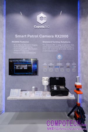 酷博樂本次展覽則以「Eyes of AI」為主軸盛大展出新一代Cupola360智慧巡檢相機RX2000,該相機支援8K@15超高畫質時時全景影像、NDAA認證、 內建資安防護、AI邊緣運算技術及開放式AI擴充平台,可即時進行資料分析與決策,Cupola360時時全景相機與市場監視器完全不同,每支 Cupola360 相機宛如建立一個遠端「現場分身」,相關應用商機龐大。加上搭載全時Cupola360⁺巡檢系統,整合 360 度全景影像技術與 AI 自主巡檢功能,為各行各業帶來主動式安保安防的全面革新;具備AI無死角即時巡檢、火煙偵測、人流監控與群眾行為分析等,及多項可自行擴充的AI智慧功能,同時巡檢系統亦支援與監視器整合,扮演空間指揮官(Spatial Commander)的角色,可將原有監視器畫面植入 360 全景影像中,以 Picture-in-Picture 方式呈現,不僅立刻補足所有視角盲區及完整空間感,達成完美互補。尤其相較於分割畫面的傳統監視系統因數量眾多,多只用在問題發生後的錄影回放,若加上Cupola360空間指揮官及現場分身的概念,就能提供即時預防、降低災害、提升效率、減少人力與成本的智慧巡檢能力,讓巡檢真正從「事後檢討」邁向「即時預防」。