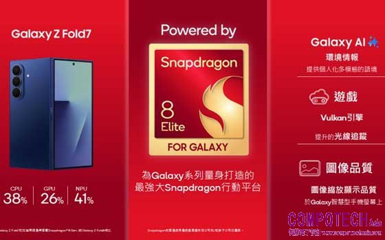 高通CDMA技術有限責任公司(韓國)資深副總裁暨高通亞太區總裁O.H. Kwon表示:「我們很高興能將Snapdragon 8 Elite for Galaxy(最初搭載於全球Galaxy S25系列)的強大性能導入Galaxy Z Fold7。此次產品的發表,象徵著高通與三星策略合作的重大時刻,我們將先進AI、頂尖效能和無縫連網能力等技術帶入超薄摺疊外型設計,為行動創新樹立全新標竿。」