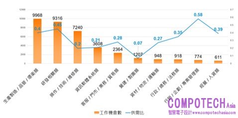 最多工作機會的職務類別