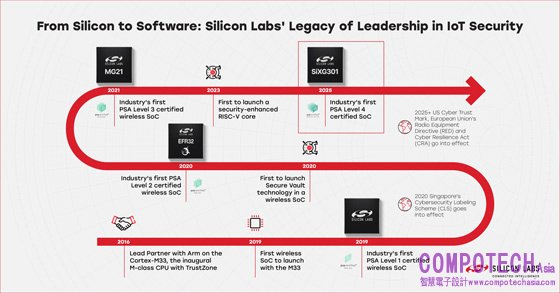 2025年8月7日--低功耗無線連接領域的創新領導者Silicon Labs (亦稱「芯科科技」,NASDAQ:SLAB)今日宣布,其第三代無線開發平台首款產品SiXG301 SoC中Series 3 的Secure Vault安全子系統已率先通過PSA 4級認證,成為全球首家通過該認證的物聯網晶片商。此成就為PSA Certified認證的最高級別,印證了Silicon Labs在安全領域的領導地位及貫徹將信任嵌入於互聯技術核心的傳統。