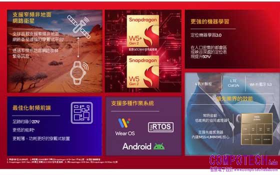 Snapdragon W5 Gen 2與最新版的Wear OS相容,並將率先亮相於Pixel Watch 41;同時也針對多裝置體驗、無縫整合與先進功能進行微調。