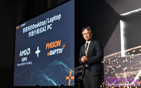 群聯電子創辦人暨執行長潘健成分享群聯電子與AMD攜手合作,協助客戶將現有桌上型及筆記型電腦快速升級為AI PC。透過整合群聯aiDAPTIV™技術與AMD Ryzen AI MAX處理器的iGPU,無需改變現有硬體,即可顯著降低AI PC成本並大幅提升推論效能。