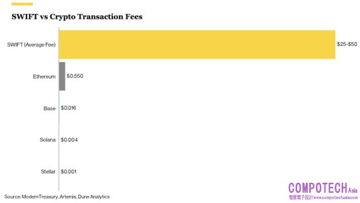 穩定幣的結算時間不再是以「天」為單位,而是「秒」。每筆交易不再需要高達 50 美元的手續費,而是低到近乎零成本(不到一美分)。