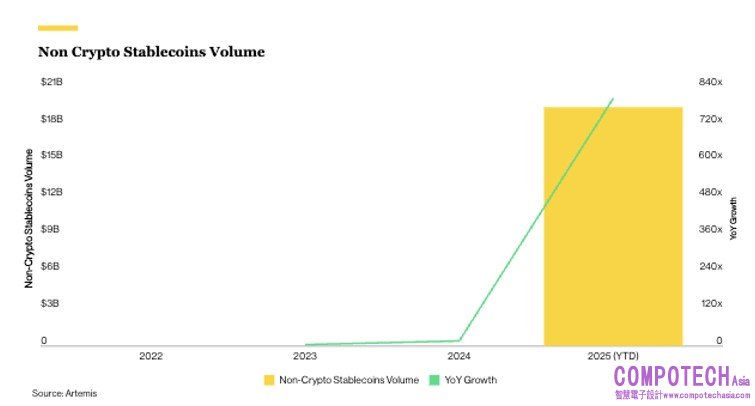 根據產業數據顯示,穩定幣交易量(非加密貨幣交易)已從 2022 年的 33.5 萬美元,成長至 2023 年的 149 萬美元,再到 2024 年的 2,412 萬美元,並在 2025 年迄今已達 194.4 億美元。
