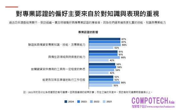 過去四年調查顯示,受訪組織認為專業認證能證實應徵者具備資安專業知識及工作能力