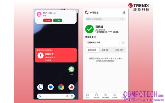 此外,趨勢科技AI防詐達人即日起免費解鎖三大防堵電話詐騙功能,凡下載AI防詐達人App即可輕鬆啟動來電防護,提升全民防詐力!