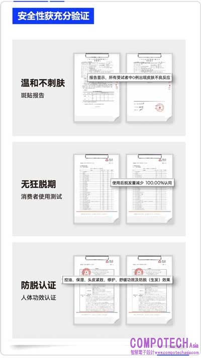 •安全性高:尤為重要的是,該配方展現出優異的安全性表現。產品研發經過嚴格的篩選與驗證過程,確保了長期使用的安全可靠。在一系列人體功效測試[10] 與近百個真實使用案例中,未出現現有同類產品中常見的初期脫發加劇等不良反應[11];得益於良好的水溶性與出色的生物相容性,配方表現溫和無刺激,體驗舒適無負擔。