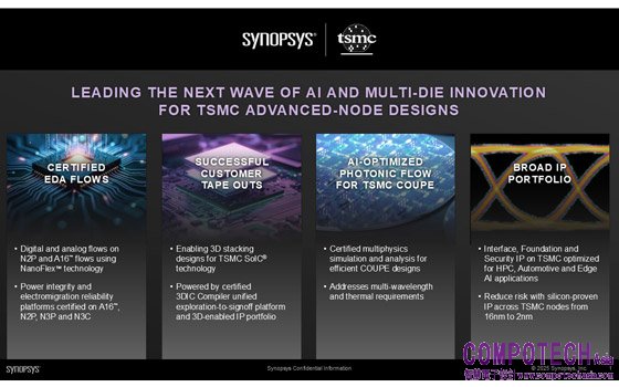 新思科技近日宣布,為提供多晶粒解決方案與台積公司持續進行密切合作,內容涵蓋先進的電子設計自動化 (EDA)與IP產品,可以支援台積公司尖端的製程與封裝技術,以驅動AI晶片與多晶粒設計的創新。針對3D封裝進行調教的3DIC Compiler探索到簽核(exploration-to-signoff)平台與IP,以及該公司與台積公司就設計賦能(design enablement)的合作關係,已經達成多項客戶晶片設計的投片。