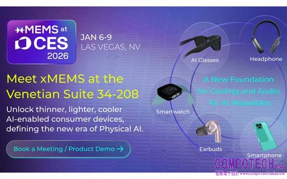 2025年12月18日--全球首創固態MEMS揚聲器與微型氣冷式主動散熱晶片解決方案開發者xMEMS Labs今日宣布,將參加CES 2026(1月6–9日,拉斯維加斯The Venetian酒店34-208號套房),展示多項開創性創新技術,搶攻快速成長的AI穿戴式與行動裝置市場。