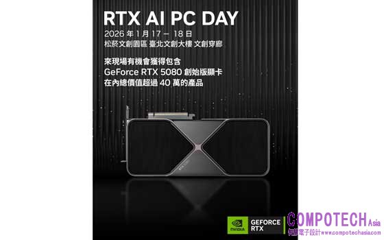 無論是想親身體驗次世代 RTX AI PC 在遊戲、創作與生產力上的實際表現,或是把握機會挑戰 GeForce RTX™ 50 系列顯示卡與筆電等重磅好禮,NVIDIA RTX AI PC DAY 都是不容錯過的年度盛會。活動將於 2026 年 1 月 17 – 18 日(11:00 – 19:00)在松菸文創園區臺北文創大樓文創穿廊盛大舉行,現場集結多家合作夥伴、豐富互動體驗與精彩舞台活動,邀請所有學生、玩家、創作者與專業工作者親臨現場共襄盛舉。