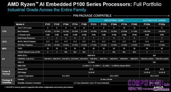 註2:根據AMD於2025年11月進行的內部分析,比較了AMD Ryzen AI嵌入式P100系列處理器的預期TOPS規格與AMD Ryzen嵌入式8000系列處理器的已公佈TOPS規格。REP-001