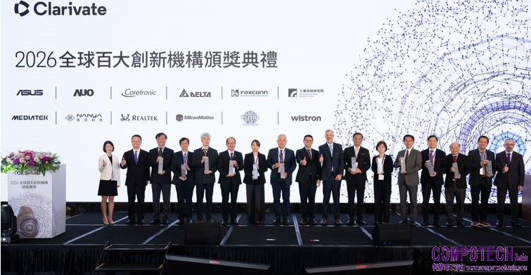 全球領先的變革性資訊服務提供者科睿唯安(Clarivate)於今年1月發布2026年全球百大創新機構(Top 100 Global Innovators),共有12家臺灣機構獲選,位居全球第三。科睿唯安於今(9)日舉辦百大創新機構頒獎典禮,邀請今年入榜的工研院、鴻海、聯發科、台積電、友達光電、台達電、瑞昱半導體、緯創資通、南亞科技、華碩、中光電和慧榮科技共享榮耀,一同見證臺灣機構的創新能量及其卓越的產業地位。