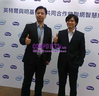 照片人物:英特爾物聯網解決方案架構師莊欽龍博士(左)及明基智能副總經理曾文興(右)
