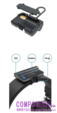 圖3:將 Nx 追踪器固定在耳機頭帶 (橫樑) 上,以 AAA 電池驅動藍牙裝置