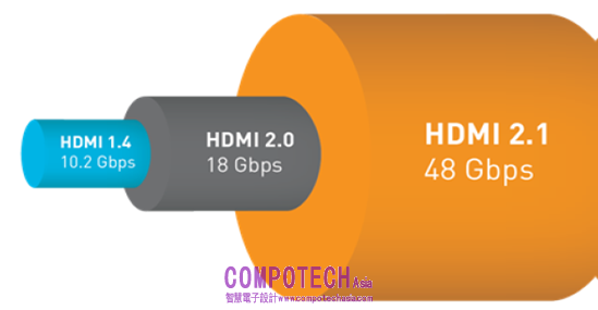 2017年,是HDMI技術新的起點。HDMI Forum對外宣佈了新一代HDMI 2.1規格。最新的 HDMI規格支援一系列更高的視頻解析度、包括 8K60 和 4K120 在內的刷新頻率、動態 HDR,同時憑藉全新的 48G 線纜支持更高的頻寬,同時HDMI 規範 2.1 版本逆向相容早前版本。