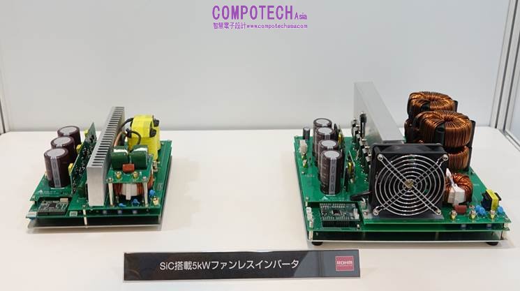 憑藉在SiC材料上的技術積累,ROHM SiC溝槽式MOS 5kW變流器的體積和重量均只有較傳統變流器的一半,而轉換效率卻從以97%拉升到99%,更為重要的價值是,這個5KW變流器無需風扇輔助散熱,體積縮小和發熱大幅圖降低,讓開發人員可以根據設計需求改變變流器的位置,大幅度提升系統可靠性。正是目前正在快速發展的電動/混合動力汽車市場急需的升級用產品。