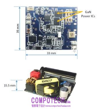 圖2: 65W USB-PD筆電電源轉換器樣品,NVE028A相比先前同級最佳產品減小50%