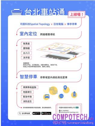 日前,亞旭再傳新工程捷報:「台北車站通」(Taipei Main Station Navigator) 手機應用程式 (APP) 已正式上線!Google Android 和 Apple iOS 皆可使用。台北車站是南來北往差旅重要的進出門戶,平面面積達 6 萬坪之廣,隨著「六鐵共構」的峻工通車、站體設施的與日俱增,行人動線亦趨於複雜,且出口多、指標不夠明確,甚至有人將之戲稱為「迷宮」。這款 APP 融合都市景觀及防災理念,具行人導引、室內導航、觀光交通資訊、消防安全監控與停車場等五大特色,可在站內定位、協助使用者導航至車站範圍內的任何地點。