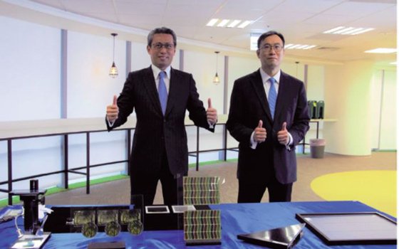 照片人物:台灣地區康寧總經理曾崇凱( 圖左) 與康寧高效能顯示部資深專案經理蘇柏樺( 圖右) 共同介紹康寧最新產品Corning Astra Glass
