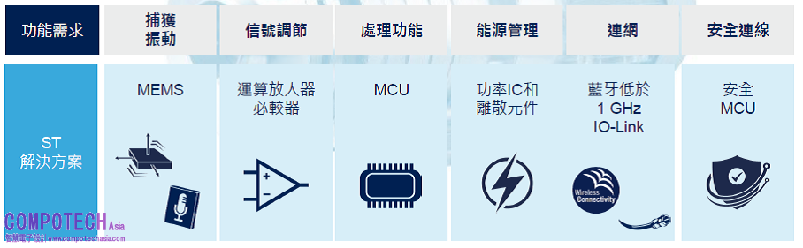 “根據統計,在工業應用中,預測性維護,可以省下12%預訂修復成本,使維護成本減少30%,機器故障時間減少50%,故障率降低70%!”意法半導體MEMS及感測器事業群類比元件產品部 工業與功率轉換部門總經理Domenico Arrigo介紹說。