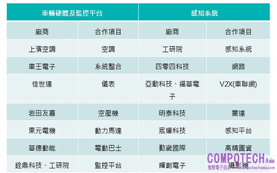 表: 14家車用電子之設備及軟硬體廠商合作項目