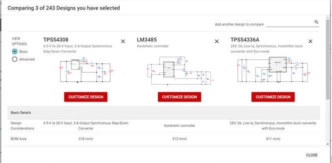 圖2顯示了新的選擇頁面,每個頁面皆有比較設計的複選欄可勾選。此項新功能可產生一個表格,如圖3所示,其中包含了其他訊息,如積體電路(IC)參數和積體電路特性,這些資訊可幫助您對多個設計進行交叉比對。