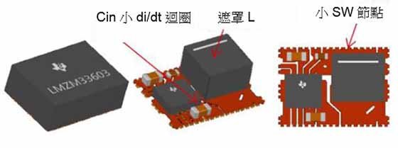 如圖3所示,由於模組電源集成了很多無源器件,使得開關節點區域得到了很好的優化。