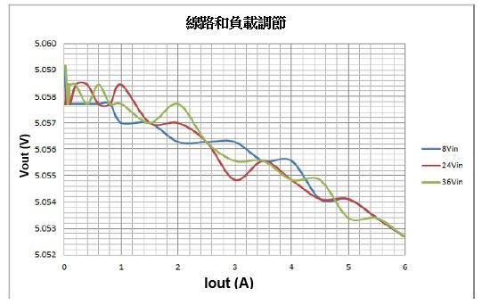 圖8所示為LMZM33606的線路和負載調節。對於3A負載,線路穩壓率為0.02%;對於標稱24 V輸入,負載調節率為0.1%。