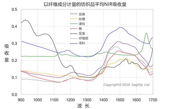 圖1:不同纖維含量紡織品的近紅外吸收光譜