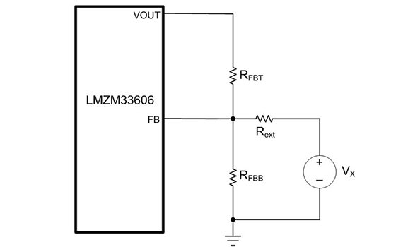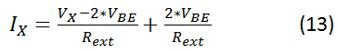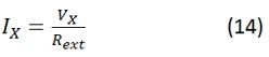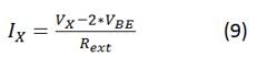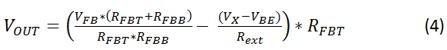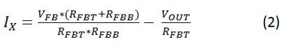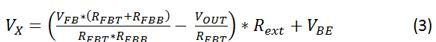 Rext設定為50kΩ。FB節點可以應用基爾霍夫電流定律,您可以使用等式2計算電流IX: