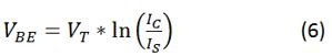 之前曾解釋過,電晶體的VBE取決於集電極電流,如等式6所述: