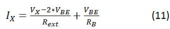 現在可暫時忽略電阻器RB,等式9按照以下方式計算導入本設置中的參考電流: