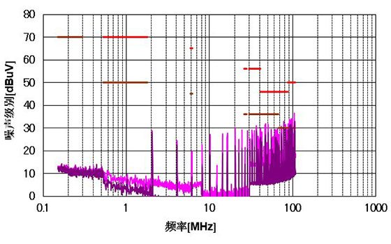 為了驗證最佳佈局,測量EMI資料顯得至關重要。圖4和圖5對一個兩路輸出的變換器傳導EMI進行了對比。同時,該電路採用移相控制,減小輸入電流紋波,從而優化輸入濾波器。從測試結果可以看出,U型佈局的EMI性能優於I型佈局的EMI性能,尤其是在高頻的部分。