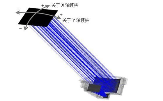 在日常駕駛條件下,當車輛轉彎及上下坡時,各種角度的日照均會射入車內。因此,重要的是在適當的角度範圍內掃描入射的太陽光,如圖1所示。TI發現,在採用TI DLP®技術的AR HUD原型中,離軸峰值太陽輻照度比主光線水準差2.7倍,導致熱負荷顯著增加。模擬的峰值太陽輻照度如圖2所示。如果您的系統設計無法處理最壞情況下的離軸太陽輻照度,那麼您將面臨因受損成像儀面板造成的不可接受的現場故障風險。