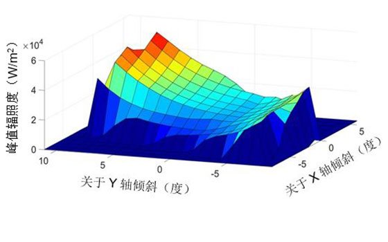 圖 2:散射屏上的峰值輻照度作為輸入陽光角度的函數。