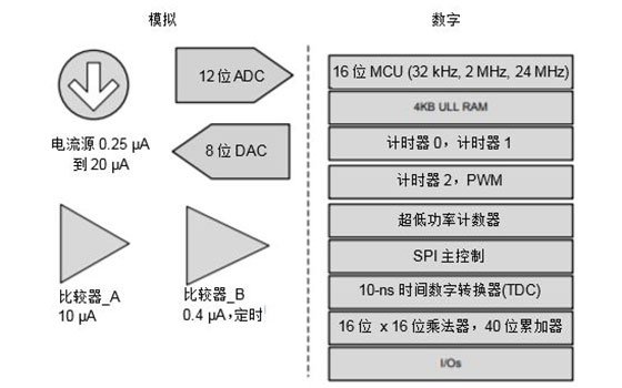 SimpleLink感測器控制器是專用的16位元中央處理單元(CPU)核心,在活動模式、待機模式和啟動耗能階段均只消耗極低功率。如圖 2 所示,該感測器控制器包括類比和數位週邊設備,它們專為實現超低功率而進行了優化。