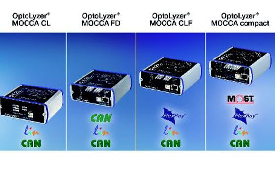 OptoLyzer MOCCA FD 配有兩個CAN-FD 介面,這兩個介面也可以配置為CAN 高 速、CAN低速或單線CAN。此外還配有六個LIN 介面和四個標準 CAN 介面。CAN-FD 方面,支持 ISO 和非ISO CRC 計算。CAN FD 時間戳記的精確度小於一微秒。此外,MOCCA FD 還帶有觸發介面和繼電器介面。與PC 連接方面,設備配有USB 2.0 介面。