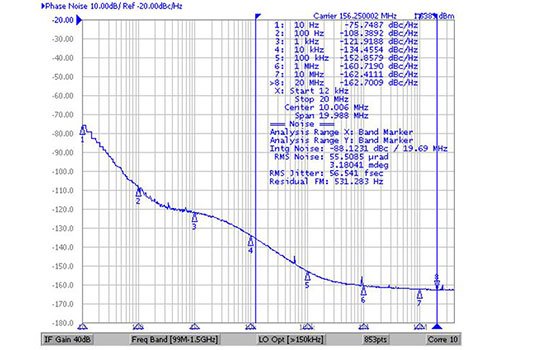 信號品質的特徵在於系統的誤差向量幅度,參考時鐘的相位雜訊對它起主要影響。由於更加密集的調製方案計畫用於5G(目前從256個正交幅度調製 [QAM] ,未來高達1, 024個QAM),對誤差向量幅度的要求變得越來越嚴格。因此,來自網路同步器的低雜訊參考時鐘對於確保最佳系統性能至關重要。