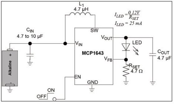 藉助作為發光二極體(LED) 定電流產生器所優化的精簡、高效率、固定頻率的升壓型DC-DC 轉換器,可針對使用一顆和兩顆鹼性電池、鎳鉻和鎳氫電池供電的應用環境,以少量的外部元件輕鬆地供電。它可以整合在各種應用中,從一顆鹼性電池、鎳氫或鎳鉻供電的基本單顆LED 驅動器,到多個紅外線、白光和RGB LED。